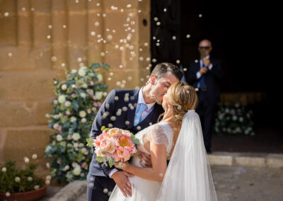 La romantica cerimonia è stata celebrata all’interno della chiesa di San Nicola ubicata nella Valle dei Templi, vicino al Museo Archeologico Regionale Pietro Griffo, con un fascino indiscutibile e ideale per loro che volevamo una cerimonia intima circondati dal calore e dall’affetto degli amici e parenti più cari.